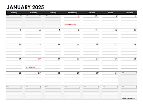 2025 Excel Calendar Template With Public And Federal Us Holidays.
