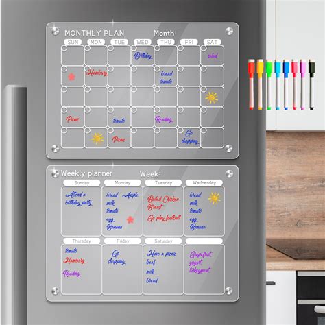 This magnetic calendar provides ample space for your monthly and weekly plans, simplifying your daily life. They are free of imperfections, with perfectly smooth surfaces and rounded edges. Aitee acrylic magnetic monthly and weekly calendar for fridge, clear set of 2 dry erase board calendar for fridge reusable planner, includes 6 dry erase markers with 3 colors(16x12inches) Perfect for schools, homes, and offices. Find great deals and sell your items for free.