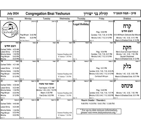 Bnai Yeshurun Calendar