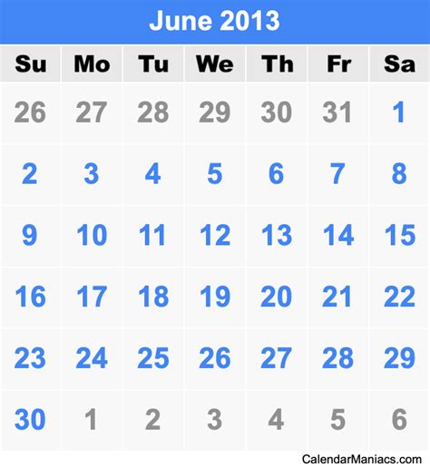 Download this june 2013 calendar which can be used for personal or business needs. Click the link of your choice to download or print now. Easy to print from your browser on any printer. Perfect for planning your year ahead.