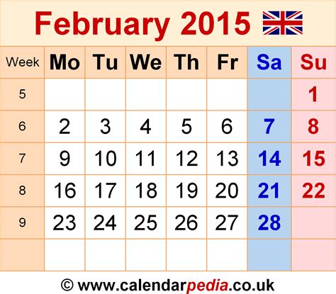 Calendar 2015 February Month