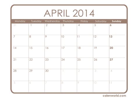 See here the month calendar of calendar april 2014 including week numbers. Find more free calendars, planners, and templates on vertex42.com keywords: And view for each day the sunrise and sunset times in calendar april 2014. Print a calendar for april 2014 quickly and easily.