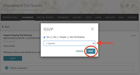 I'd like to allow members to say they are attending an event and bringing their spouse, or their kids. To let people know if you can attend an event, you can respond to the event invitation. This article is only about the rsvp feature; The importance of rsvp response rates: