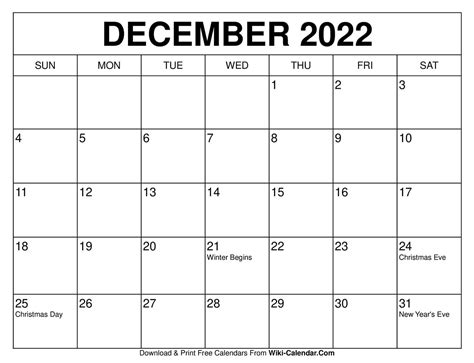 Printable Dec Calendar December 2022 Calendar;december 2022;december