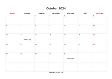 Editable October 2024 Calendar - Discover our free editable calendar october 2024 templates! Download, print and use it at home, office or school for free. Easy to download, edit and print! October 2024 calendar with holidays available for print or download. If you need a blank calendar in word format you will find these free word calendar templates useful since you can edit them in microsoft word. All calendar templates are free, blank, editable and ready for printing! Just click print right from your browser.