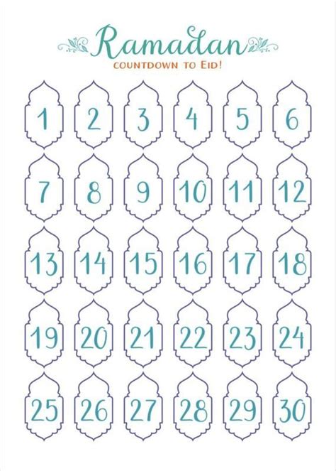 Ramadan Calendar Free Printable For Decorative Eid Home Idea.