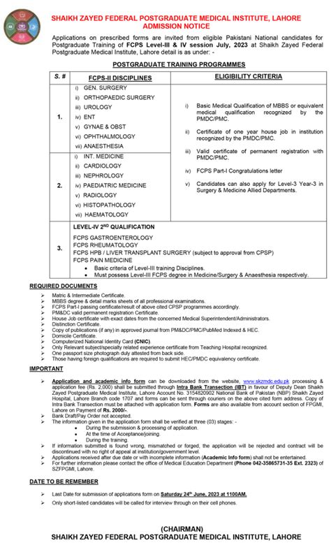 Postgraduate Training of FCPS LevelIII & IV Session July 2023 at