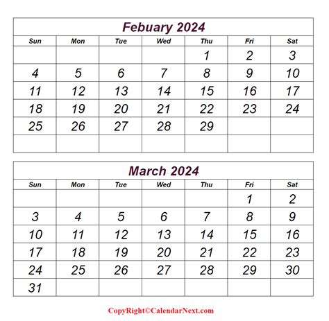 Printable two months calendar on single page, available to download for free as pdf files. February and march 2024 calendar. Includes 2024 observances, fun facts & religious holidays: Download this 2024 february and march calendar in case you’re looking for a simple printable pdf. February and march 2024 calendar.
