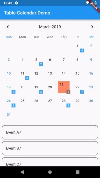 Flutter_Calendar_Carousel - This widget can help you build your own calendar widget highly customizable. Simply create a calendarcarousel widget, and pass the params according to your customization: Calendar widget for flutter that is swipeable horizontally. The horizontal calendar widget can help you build your calendar. Now you can even add your icon. This widget can help you build customizable calendar with scrollable actions. This widget can help you build customizable calendar with scrollable actions.