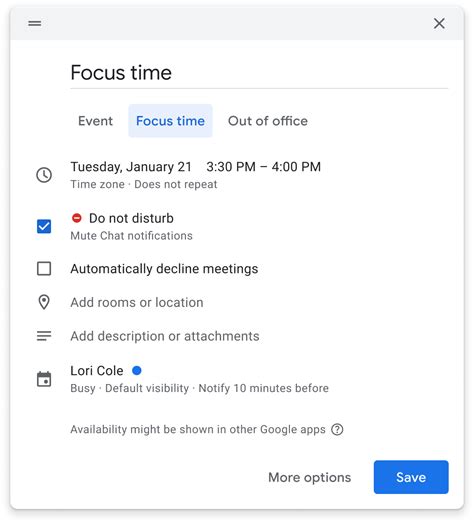 Google Calendar Working Hours