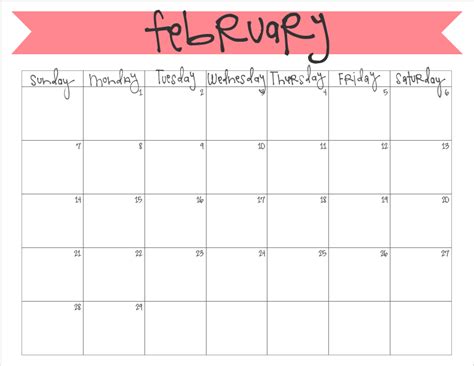 Monthly Calendar February 2016