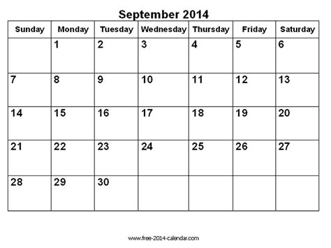 September Month Calendar 2014