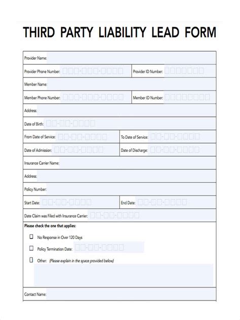 Beneficiaries may be asked to complete the possible third party liability form if the health care services received indicate an accident or injury. I promptly sent the form back (multiple copies fax, secure portal, and mail) within the time frame. Submit it by mail or fax to:. Submit it by mail or fax to: Beneficiaries may be asked to complete the possible third party liability form if the health care services received indicate an accident or injury.