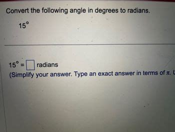 To Convert Degrees To Radians, Multiply The Degree Value By Π/180.
