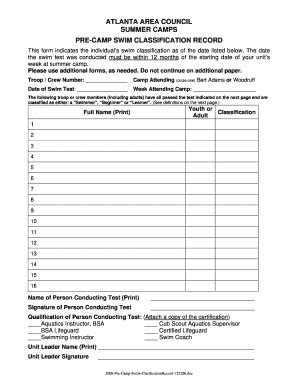 Download a pdf file of the swim test form for boy scouts of america activities. A pdf form to track the swim classification of individuals participating in boy scouts of america activities. Where do i view the requirements for the swim test? Free mobile apppaperless workflow24/7 tech support