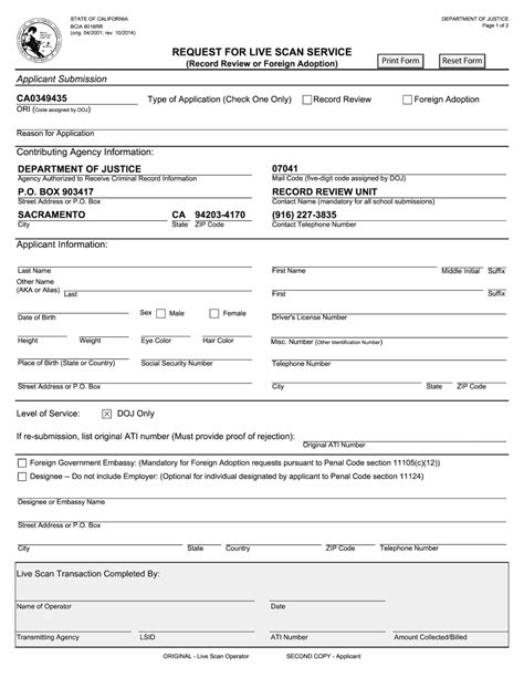 Applicant must contact their contributing agency to verify the accuracy of the form required for their live scan submission. Dmv must receive a communication directly from doj to process the application. See the table below for a list of all available live scan forms. The request for live scan service (pdf) form is available online. If you do not have a california driver’s license, enter other identifying numbers such as another state driver’s license number or california id card number.