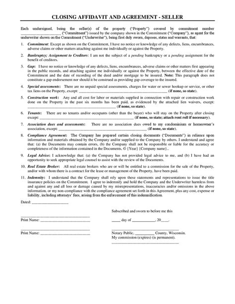 This article will break down the key components of a closing affidavit and provide a sample form to guide you through the process. Navigate the complexities of real estate transactions with confidence by understanding the closing affidavit. In order to complete the sale, the seller is required to provide an affidavit in which he or she, or both, swear at closing that, among other things, there are no outstanding. Affidavit of support · character affidavit · affidavit of birth