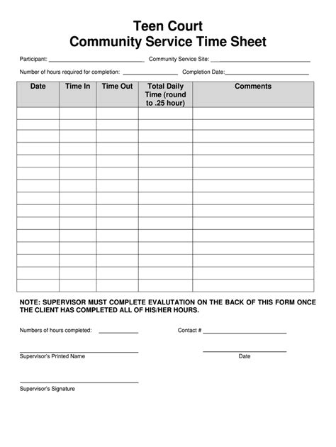 A Printable Community Service Form For Court Is Crucial For Meeting Legal Obligations.
