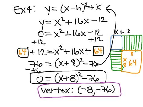 Completing the square of any quadratic equation helps us to find the solution of the quadratic equation and gives us a vertex form of any quadratic equation. The most common application of completing the square is in solving a quadratic equation. Here, the vertex is (h, k). It is written as a(x + m) 2 + n, such that the left side is a perfect square trinomial. By vertex form, it is easy to make a graph of any quadratic equation.