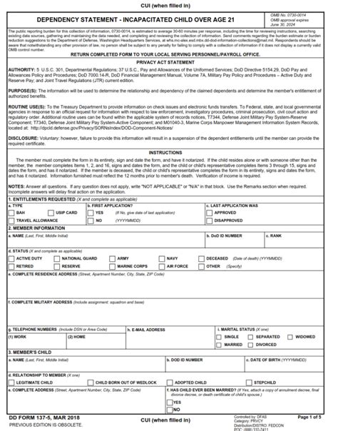The information provided on this form will be used to determine the relationship and dependency of an individual on the military member, for entitlement of. Department of defense form used by corps officers: Authority to request this information is derived from the united states annotated code title 10, chapter 55. If a change in dependency has occurred, and you wish for your incapacitated dependent to remain eligible for benefits, you may submit a complete dependency redetermination package.