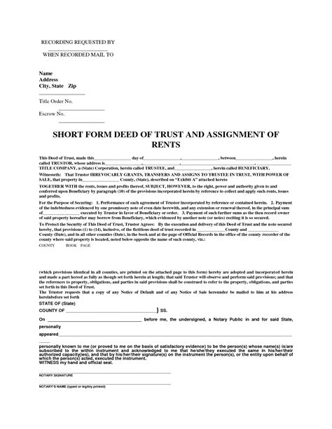 ________________________, a ________________________ ________________________, whose address is ________________________, ________________________, ________________________ ________________________. Read this comprehensive guide on filling out a deed of trust form and learn when you should choose the deed instead of a usual mortgage agreement. What is a deed of trust? The borrower agrees to give security in the loan by granting the legal title of the property to the lender.