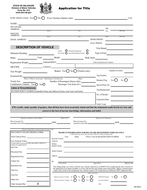 The delaware no 212 form is a crucial document for individuals seeking to title and register a vehicle in the state of delaware. The inspection requirements may be waived provided there are adequate inspection and repair facilities at the fleet headquarters located in. Ensure all items are completed on the. A fleet account shall consist of 10 or more vehicles.