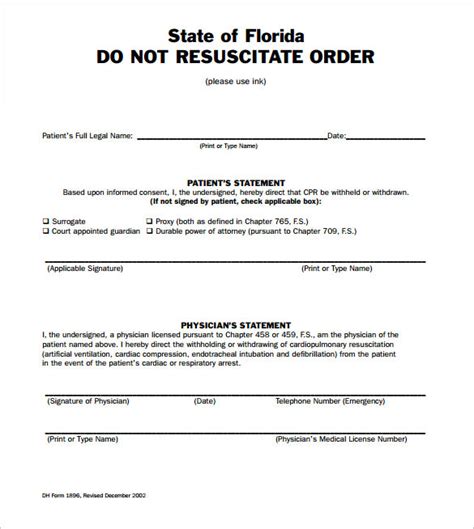 The bracelet is intended to communicate the existence of a “do not resuscitate” order to the emergency medical personnel who may be summoned in the event of an emergency. A prehospital medical care directive is a document signed by you and your doctor that informs emergency medical technicians (emts). A do not resuscitate order (dnro) is a form or patient identification device developed by the department of health to identify people who do not wish to be resuscitated in the event of. The form explains the limited emergency care and the patient's rights and responsibilities. Reviewing a do not resuscitate (dnr)/polst form this dnr/polst form should reviewed periodically or there patient substantial transferred change from be one in the patient’s health. “do not resuscitate” can mean that you don’t want chest compressions or endotracheal intubation.