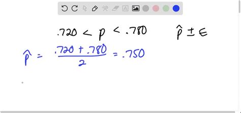 Statistics and probability questions and answers So p̂ = 0.666 the value of e is the difference in absolute value between p̂ and either bound. Express the confidence interval (552, 733.4) in the form of + me. Express the confidence interval (22 %, 28.