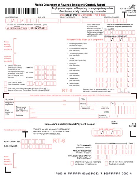Florida Rt 6 Form - Ssns obtained for tax administration Florida air carrier fuel tax return this form is for informational purposes only; If you are filing as a sole proprietor, is this for domestic (household) employment only? Not for filing tax information. Enter your federal identification number (fein) and reemployment tax (rt) account number fein: Under penalties of perjury, i declare that i have read this return and the facts stated in it are true (sections 443.171(5) and 443.141(2), florida statutes). Social security numbers (ssns) are used by the florida department of revenue as unique identifiers for the administration of florida’s taxes.