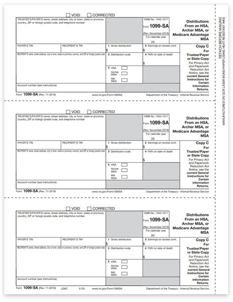 1099SA Tax Forms for MSA or HSA Distributions, IRS Copy A ZBPforms