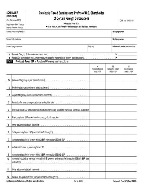 Person has an ownership or interest in a foreign corporation, they may be required to file form 5471. Fill out the previously taxed earnings and profits of u.s. A separate category code is required to carry the statement to the correct schedule p. The form 5471 has 17 separate schedules; Form 5471 is an information return of u.s. 49203f schedule p (form 5471) (rev.