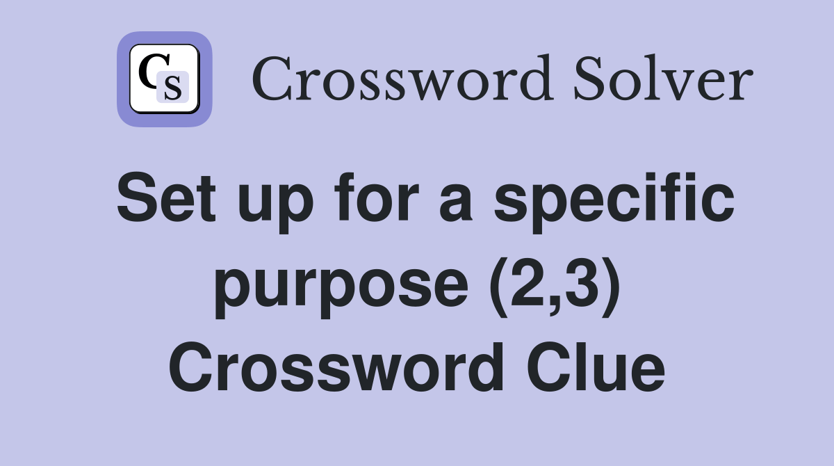 Our Crossword Solver Found 10 Results For The Crossword Clue Formed For A Specific Purpose.