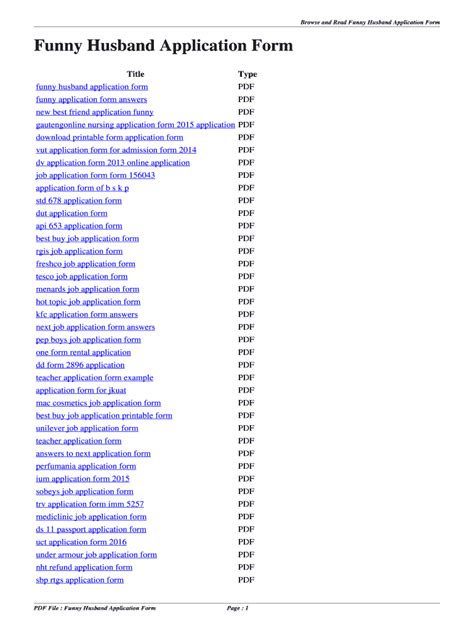 Husband Application Form Funny
