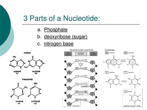 The sequence of _____________________ carries the genetic information of an organism. Adenine (a) makes two hydrogen bonds with thymine (t), and guanine (g) makes three hydrogen bonds with cytosine (c) in the other strand. E, and __________________ adenine are in dna.8. The section discusses the significance of base pairing in dna, emphasizing how specific pairs of nitrogenous bases—adenine with thymine and cytosine with guanine—form hydrogen bonds.