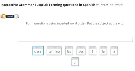 Interactive Tutorial Forming Questions In Spanish - Put the subject at the end. (inversion) elena toma un curso de física. (where do you live?) ¿cuántos años tienes? Put your knowledge to the test in the interactive exercises below. Learn about the types of questions in spanish grammar and their word order with lingolia. ¿ ___ a las nueve? Whether you are a beginner or an advanced learner, these tutorials will guide you through the process of forming questions in spanish, helping you gain confidence in your language skills.