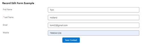Lightning Record Edit Form - To customize the form layout or provide custom rendering of record data, use lightning:recordeditform (add or update a record) and lightning:recordviewform (view a record). The objectapiname attribute is always required, and the recordid is required only when you’re editing or viewing a record. The component displays fields with their labels and the current values, and enables you to edit their values. If you want to customize the form layout or preload custom values, use lightning:recordeditform. If you need more flexibility than these components provide, see build custom ui. The record form components, lightning:recordform, lightning:recordeditform, and lightning:recordviewform, handle form density in similar ways. Additionally, data provisioned by apex is not managed and you must handle data refresh by invoking the apex.