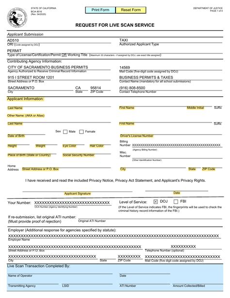 Live Scan Request Form California