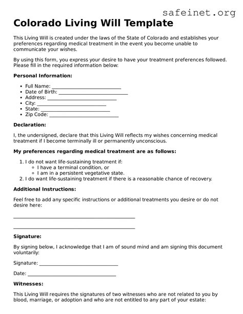 The Colorado Living Will Form Is A Legal Document That Allows An Individual To Outline Their Preferences Regarding Medical Treatments And Interventions In The Event That They Are Unable To Communicate Their Decisions Due To Illness Or Incapacity.