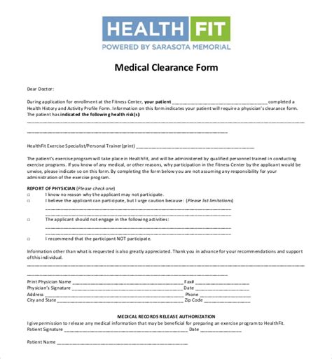 15 Sample Medical Clearance Forms Dental Surgery Exercise Work 654
