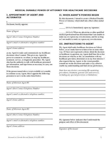 Medical Power Of Attorney Form Colorado