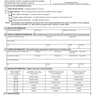 PA DMV Form MV1L. Application for Lessee Information Forms Docs 2023