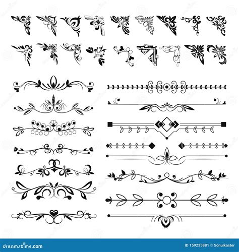 Frame angles or text separation lines, floral pattern elements Stock