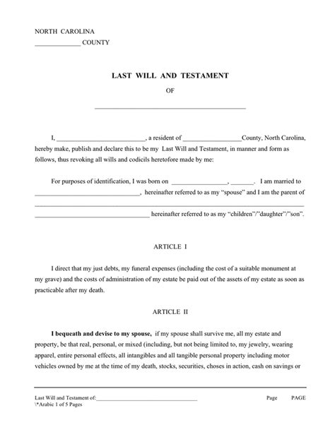 Nc Last Will And Testament Form