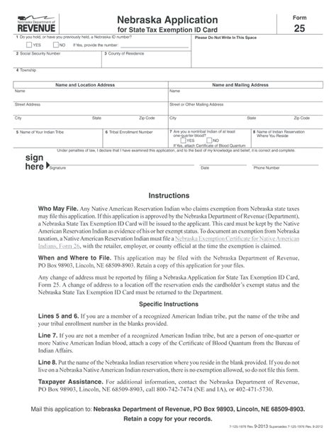 Fillable Form 25 Nebraska Application For State Tax Exemption Id Card