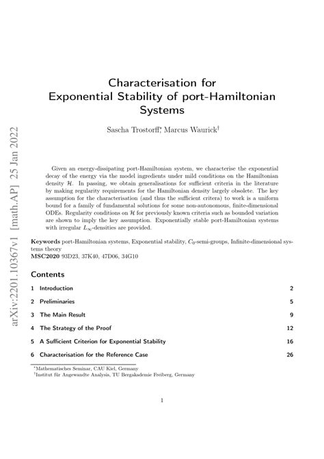 (PDF) Characterisation for Exponential Stability of portHamiltonian