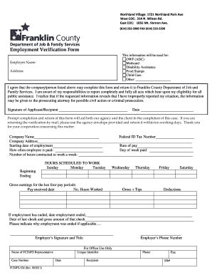 The franklin county department of job and family services provides workforce development and family support programs that improve the quality of life for franklin county residents. In order to assist us in processing your documents, please put your name and social security or case number on all documents you submit. In addition, ohio revised code 5101.37 authorizes the cdjfs to make investigations that are necessary in the performance of their duties. This is a request for confidential wage and employment information which will be used to determine eligibility for public assistance/food stamps and supportive