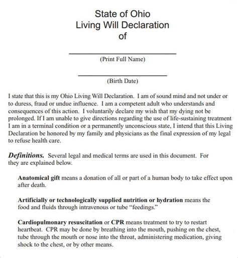 Ohio Living Will Form