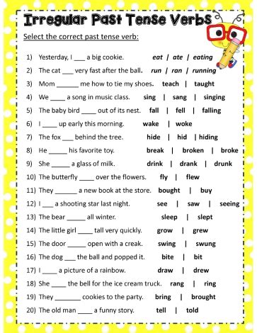 The following document does not. The full comprehension of all 4 past tense verb usages and time words is included. Practice identifying and using verbs in the past, present, and future tenses as well as their progressive forms. This unit contains printable past tense worksheets.