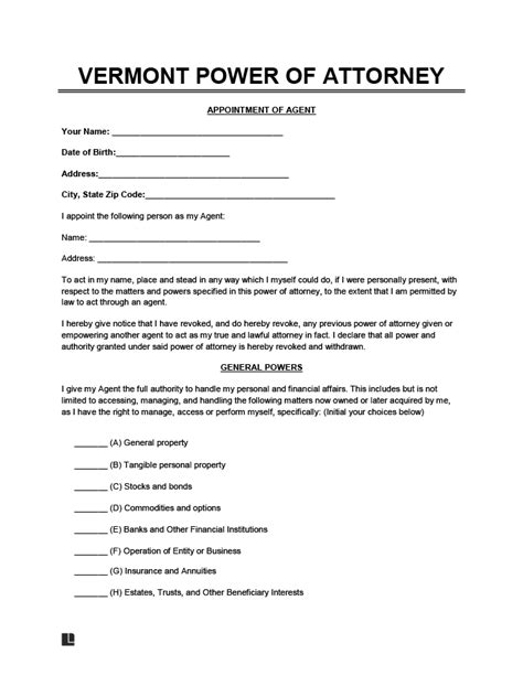 Power Of Attorney Form Vermont