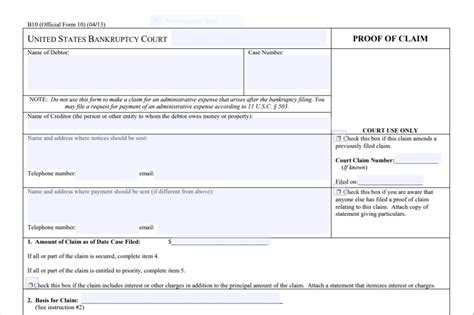The document provides notice of the claim to all of the other relevant. The creditor must file the form with the clerk of the same bankruptcy court in which the bankruptcy case was filed. Attach copies of the supporting documents, such as contracts, court judgements, invoices or liens. The form must be filed in the district where the case is